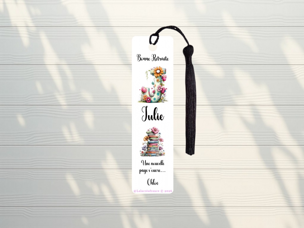 Prénoms : Personnalisez le marque-page avec le prénom du destinataire et, si vous le souhaitez, le prénom de la personne qui offre (comme sur le modèle "Chloé").