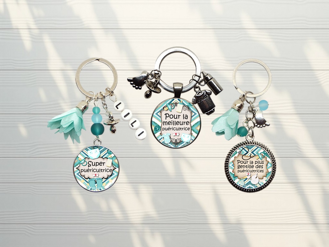 Offrez un porte-clé personnalisé pour puéricultrice, une idée cadeau originale pour remercier une professionnelle de la petite enfance.